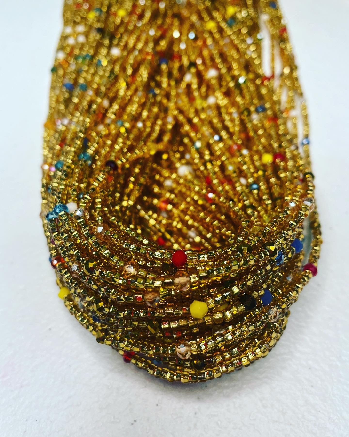 Our waist beads come strung on pure cotton thread or fishline. the beads are manufactured in Ghana and consist of crystals, stones and glass beads. Our beads do not fade and wash easily in the shower